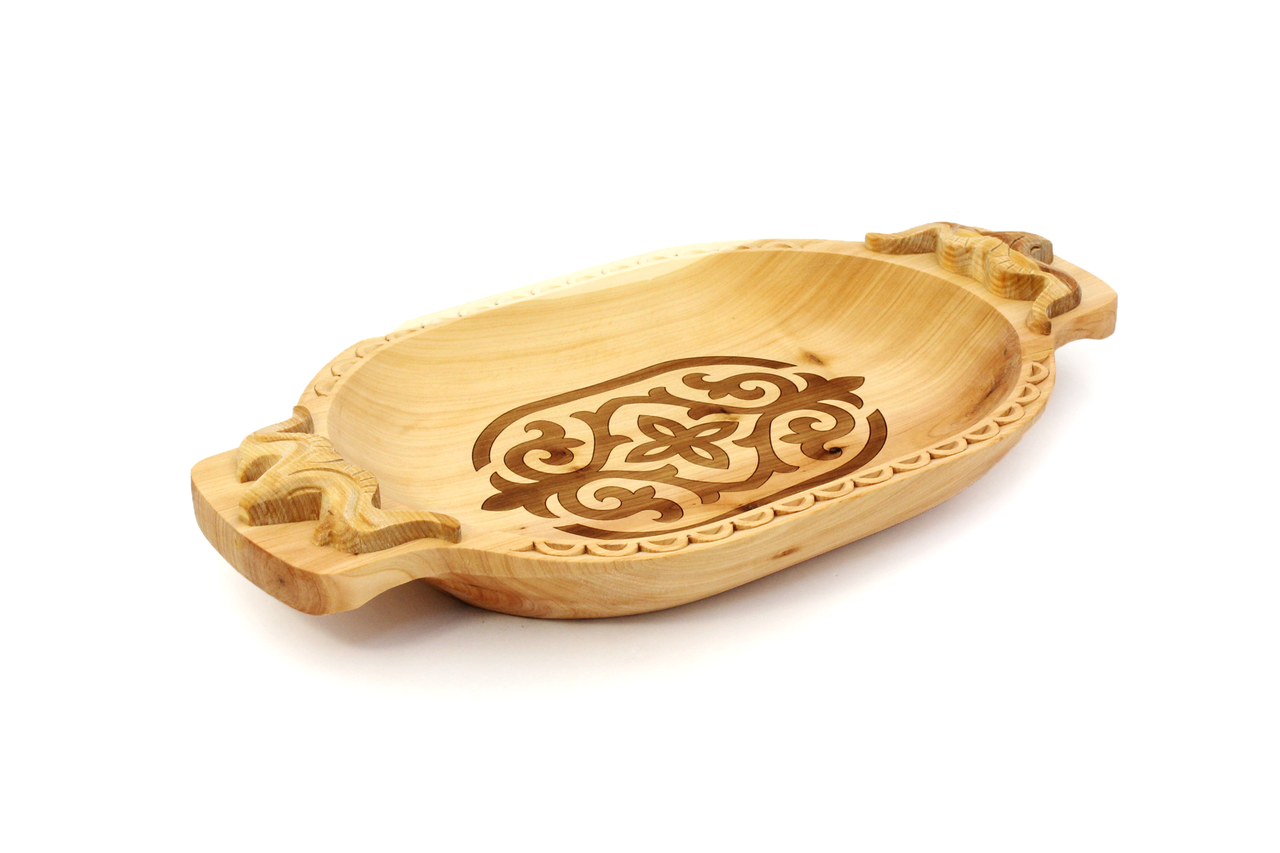 На ручках декоративные накладки в виде головы архара, ручная работа.. Для блюд любых температур. Подают бешбармак, манты, плов, куырдак, и многое другое. Ива отличается легкостью. Гарантия один год. Сделано в Казахстане. Доставка по всему миру. Склады в городах Актау и Атырау.